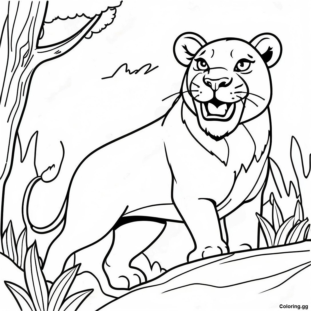 ਭਿਆਨਕ ਸ਼ੇਰਨੀ ਦਾ ਸ਼ਿਕਾਰ ਕਰਨ ਦਾ ਰੰਗ ਕਰਨ ਵਾਲਾ ਪੰਨਾ