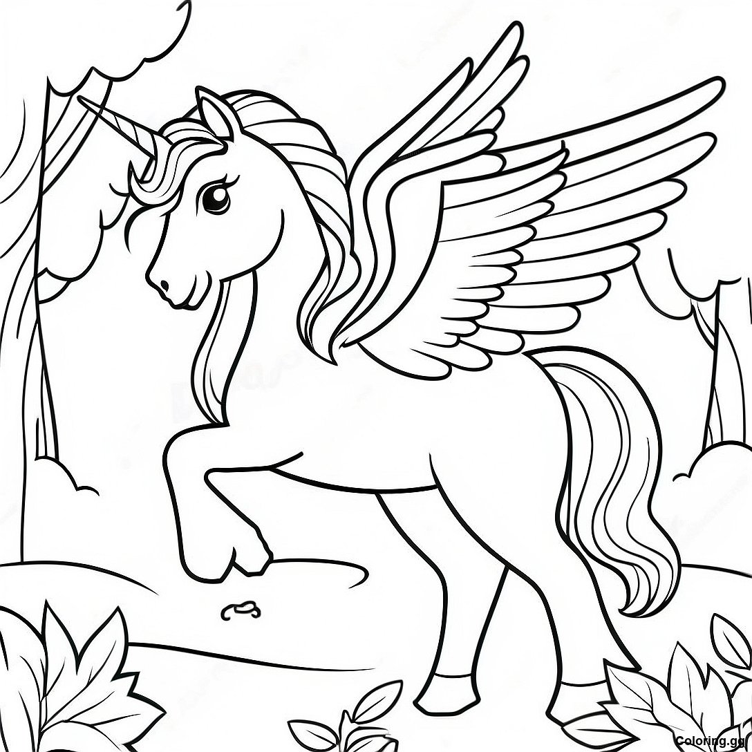ਜਾਦੂਈ ਜੰਗਲ ਵਿੱਚ ਫੈਂਟਸੀ ਪੇਗਾਸਸ ਦਾ ਰੰਗ ਕਰਨ ਵਾਲਾ ਪੰਨਾ