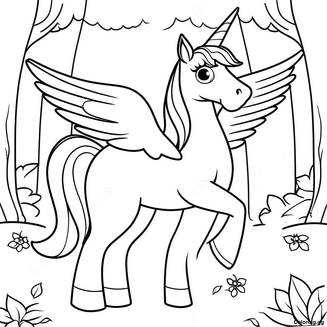 ਜਾਦੂਈ ਜੰਗਲ ਵਿੱਚ ਫੈਂਟਸੀ ਪੇਗਾਸਸ ਦਾ ਰੰਗ ਕਰਨ ਵਾਲਾ ਪੰਨਾ