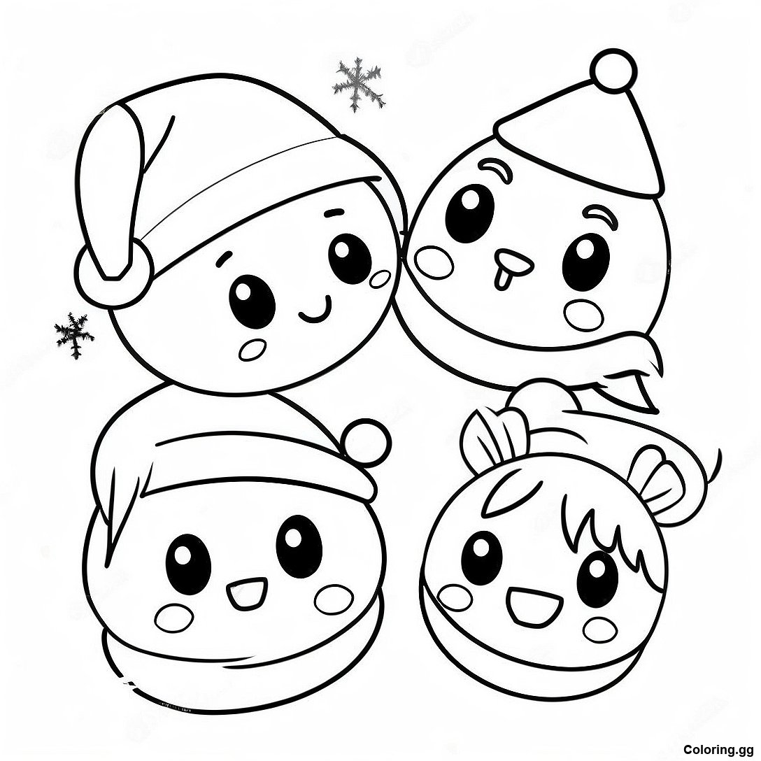 ਕਿਊਟ ਐਨੀਮੇ ਪਾਤਰਾਂ ਨਾਲ ਕ੍ਰਿਸਮਸ ਟੋਪੀ ਰੰਗ ਕਰਨ ਵਾਲਾ ਪੰਨਾ