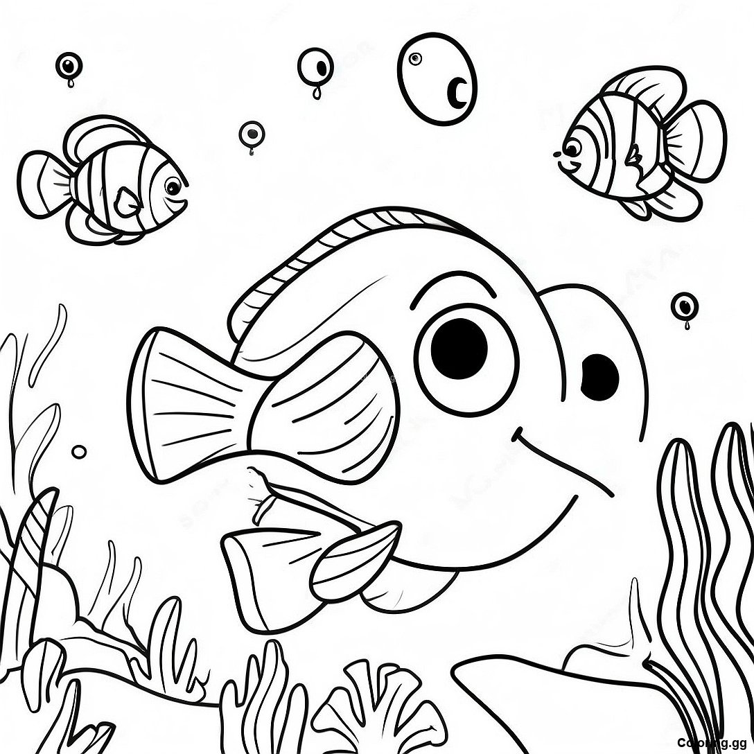 ਫਾਈਂਡਿੰਗ ਡੋਰੀ ਨੇਮੋ ਨਾਲ ਤੈਰਾਕੀ ਕਰਦੀ ਰੰਗ ਕਰਨ ਵਾਲਾ ਪੰਨਾ