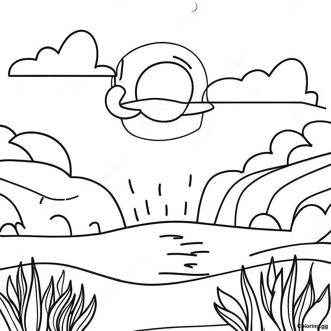 ਰੰਗੀਨ ਸੂਰਜ ਡੁੱਬਣ ਵਾਲਾ ਆਸਮਾਨ ਦਾ ਰੰਗ ਕਰਨ ਵਾਲਾ ਪੰਨਾ ਦੀ ਪ੍ਰਿੰਟ ਕਰਨਯੋਗ PDF ਡਾਊਨਲੋਡ ਕਰੋ