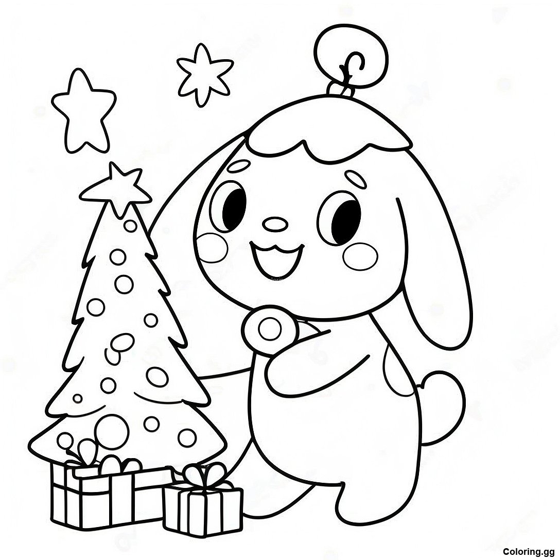 ਸਿਨਾਮੋਰੋਲ ਕ੍ਰਿਸਮਸ ਟ੍ਰੀ ਸਜਾਉਂਦੇ ਹੋਏ ਰੰਗ ਕਰਨ ਵਾਲਾ ਪੰਨਾ