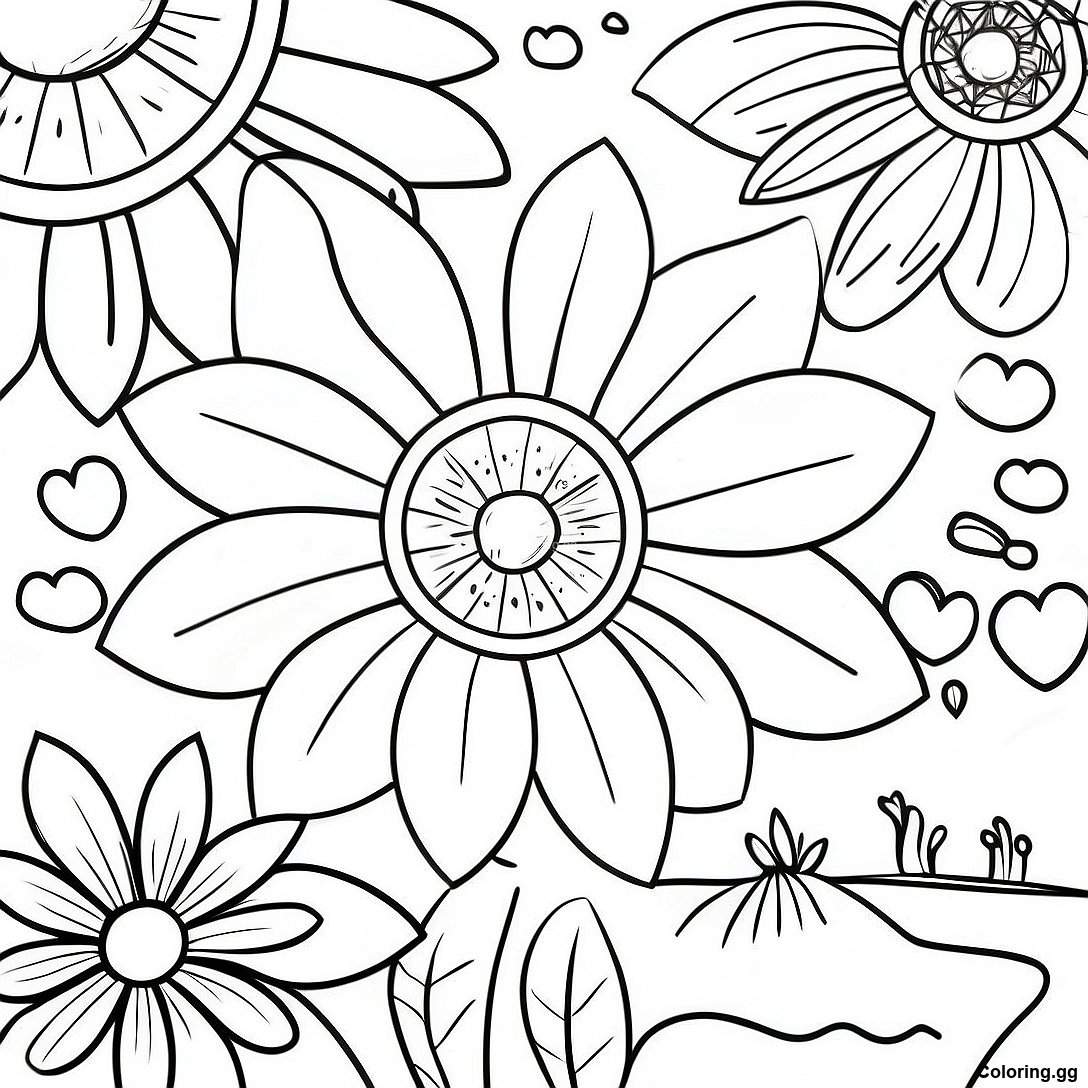ਫੁੱਲਾਂ ਨਾਲ ਰੰਗੀਨ ਦਿਲ ਦਾ ਰੰਗ ਕਰਨ ਵਾਲਾ ਪੰਨਾ